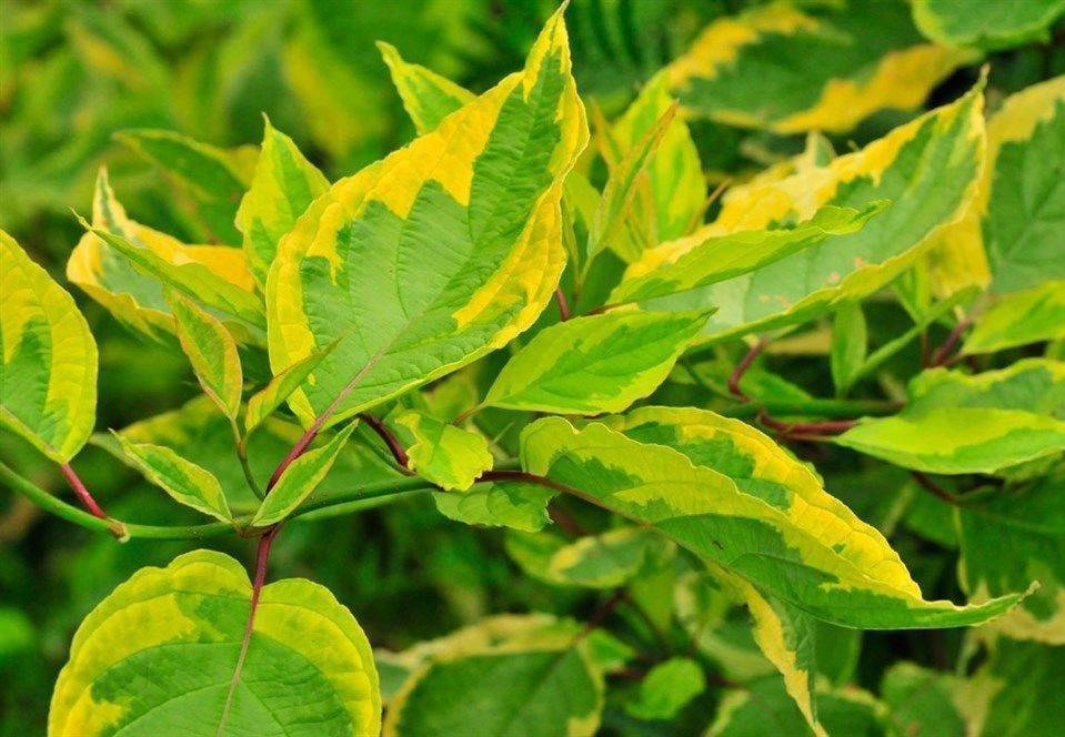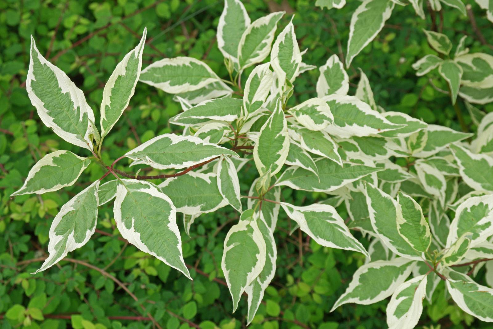 Элегантные акценты формируют переходы пятен на листве – кремовые, белые, нежно-розовые или приглушенно-желтые. У них разный размер, что создает интересный цветовой эффект. Среди сортов белого дерна встречаются кустарники или деревья с бордовой или по-королевски пурпурной листвой. Иногда случается чудо, и зеленые листья осенью превращаются в багряные, с желтыми и красными переходами.