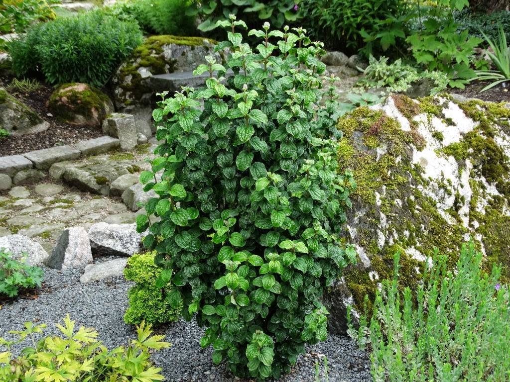 Низкорослый многолетник высотой один метр с ярко-красными побегами и темно-зелёными листьями, которые к осени становятся бордовой окраски.