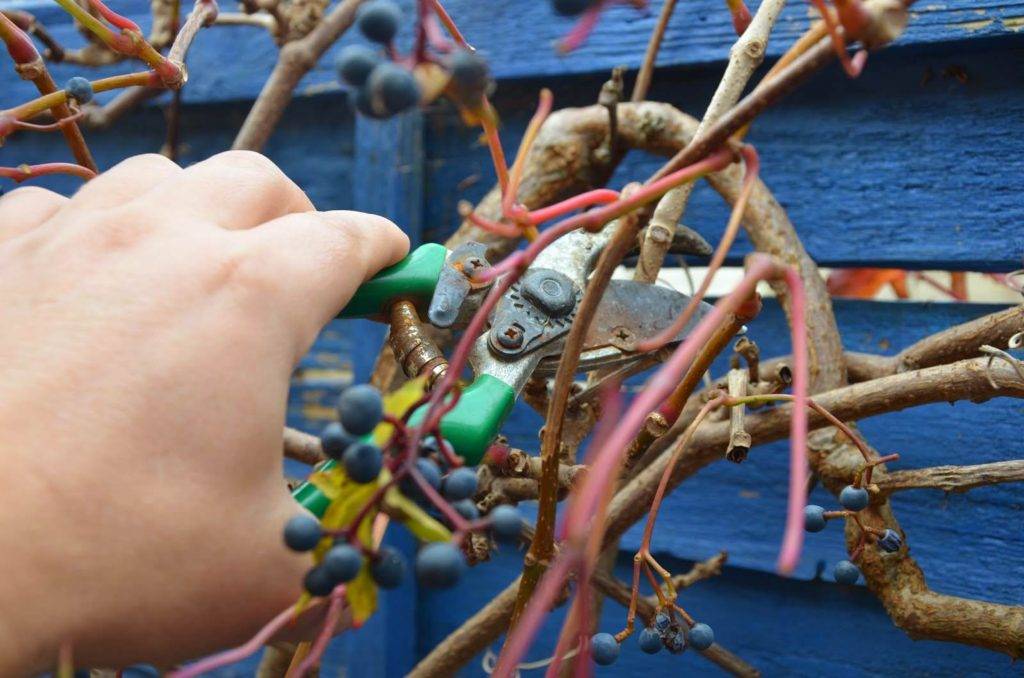 Контролировать рост нужно регулярной обрезкой. В этом случае девичий виноград выглядит ухоженным и опрятным. Обрезка делается секатором или ручной прищипкой. Прищипывая верхушку, можно стимулировать рост боковых побегов – так из одного саженца получают широко разросшуюся лиану, способную оплести большие площади.