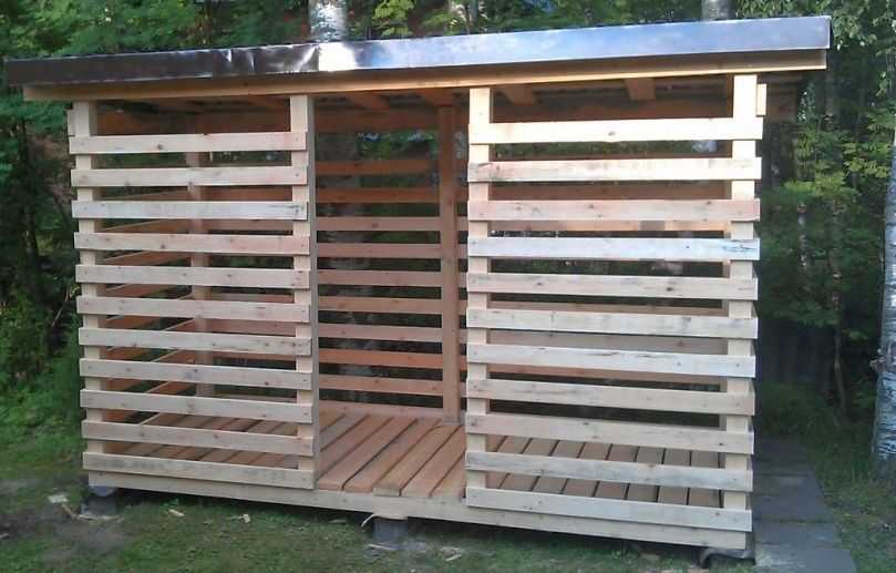 Конструкцию со стенами и крышей возводят у северной части здания. Это оградит дрова от постоянного воздействия солнечных лучей.