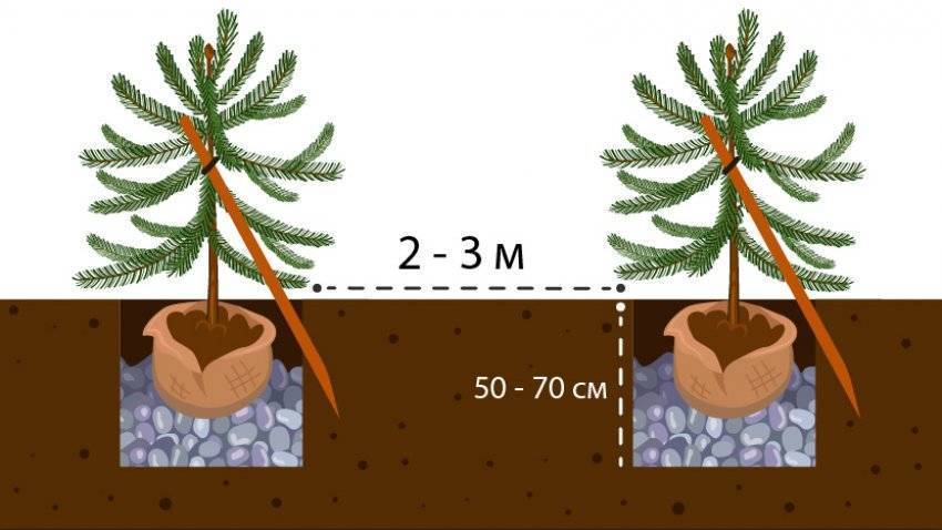 После первого этапа высаживания ели в грунт, следует выполнить такие действия: