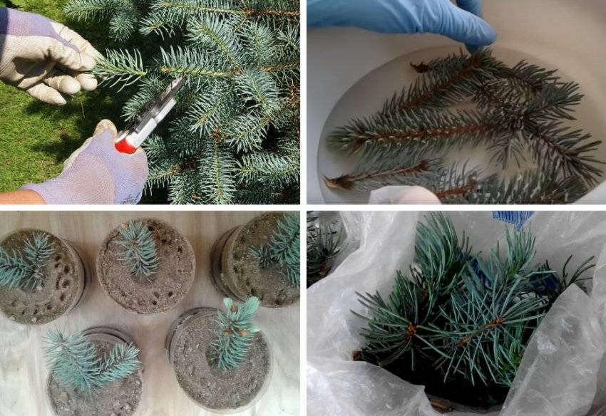 Когда черенки укоренятся (2-3 недели), их перемещают в смесь из торфа, песка и дёрна. Только спустя 5 лет, после появления почек на верхушке елей, их можно пересадить в открытый грунт.