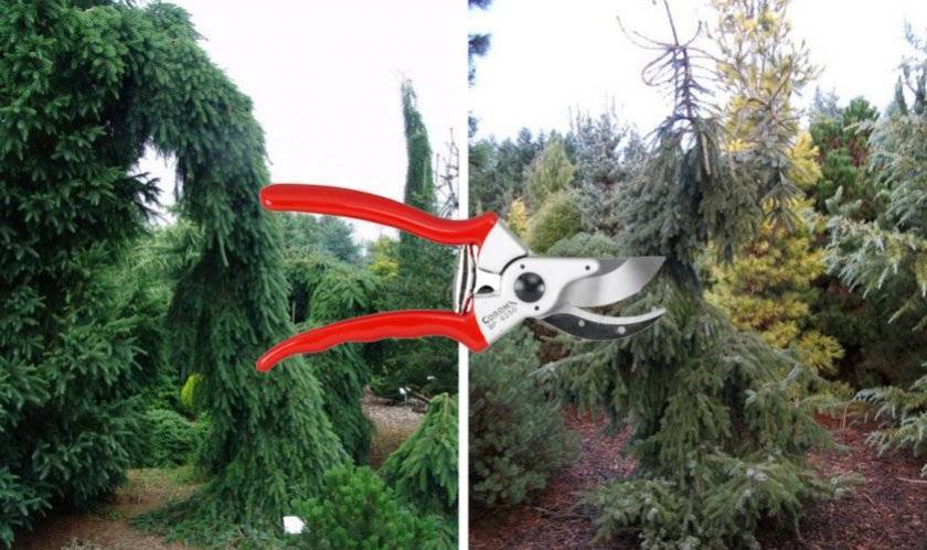 Особое внимание уделяется декоративным карликовым сортам ели, у которых более плотная крона. Соответственно, крону приводят в порядок ежегодно