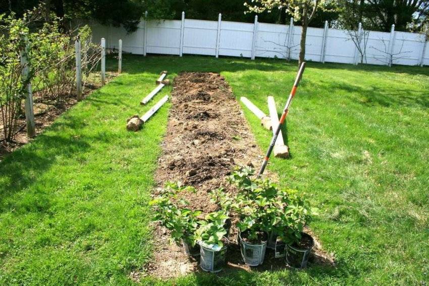 Ежевичные кусты сорта Киова высаживают через 1,5 м друг от друга. Последовательность посадки: