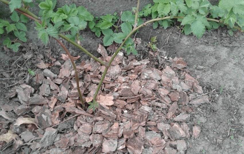 - малинную стеблевую муху, которая вылетает из-под земли в мае-июне и даёт жизнь личинкам, прогрызающим затем ходы в побегах. Чтобы помешать вылету насекомых, рекомендуют разместить толстый слой мульчи в приствольном круге куста. Если побеги начали увядать, их удаляют;