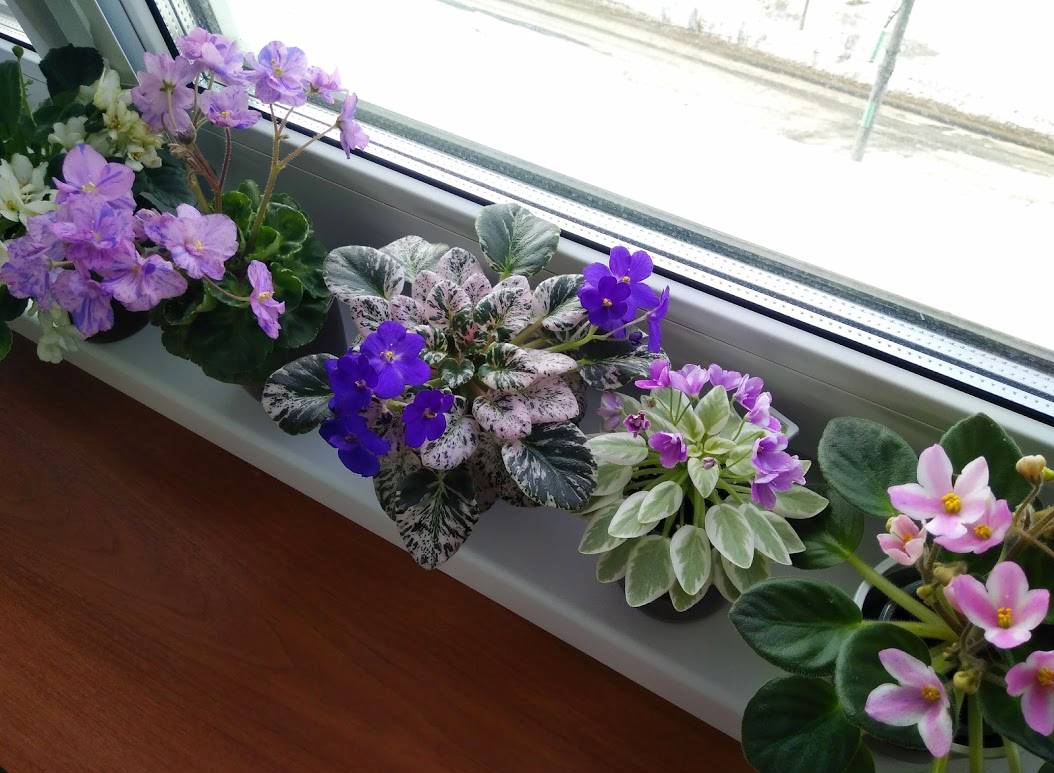 Зимой для фиалок очень опасны сквозняки: на листьях от них появляются некрасивые мраморные рисунки, а корневая во важном субстрате может перемерзнуть и загнить. Поэтому при проветривании желательно убирать цветы с подоконника