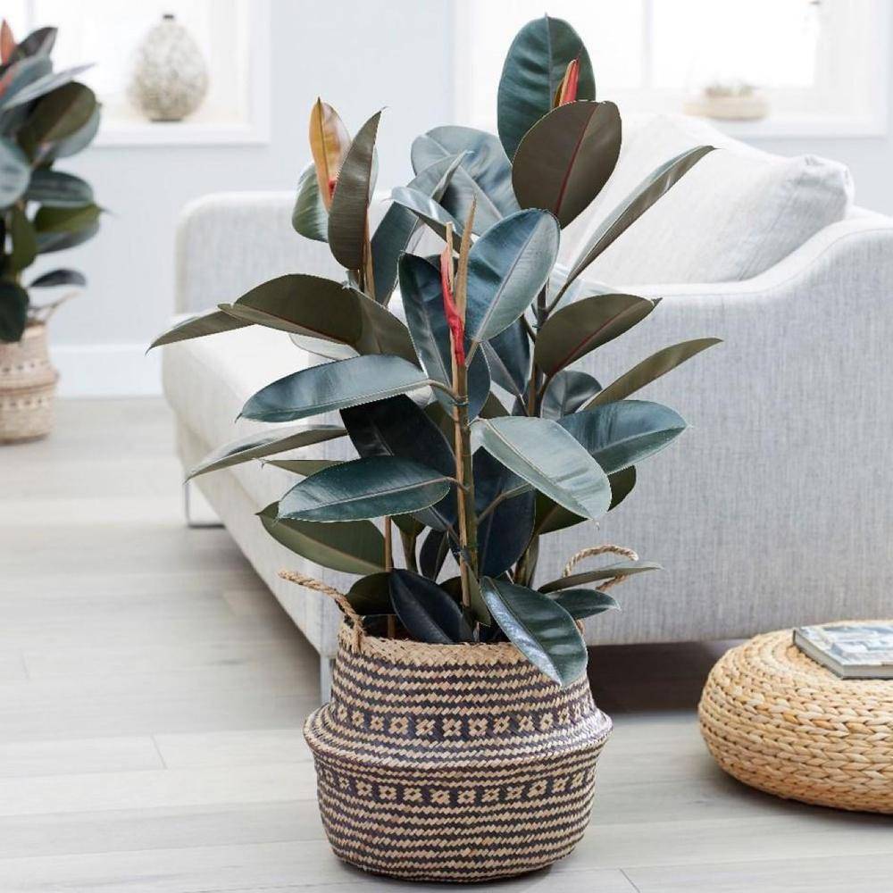 - Робуста – фикус каучуконосный, имеющий красивые большие элипсообразной формы с заостренным кончиком листья. Они имеют кожистую фактуру и темно-зеленый цвет.