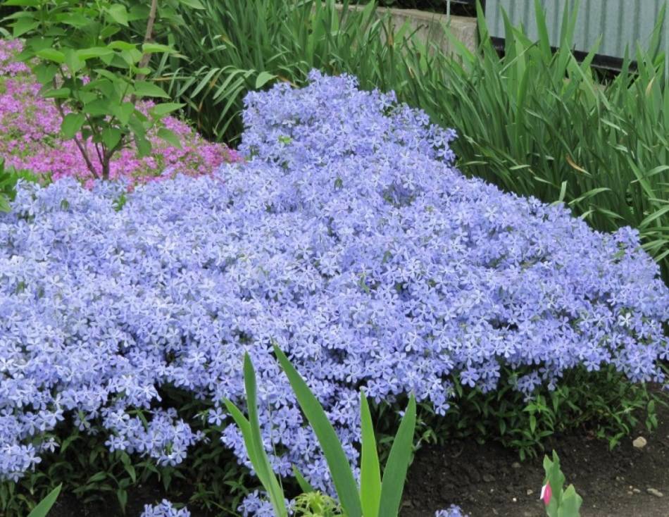 Они зацветают после почвопокровных. Среди рыхлодернистых сортов самый популярный – растопыренный (канадский). Садоводы его любят за неприхотливость. Дикорастущий вид пышно цветет голубыми цветами с дурманящим ароматом, похожим на фиалковый. При благоприятных погодных условиях флокс растопыренный покрывается цветами в конце мая и цветет около месяца. Если же сезон засушливый, то растений отцветает гораздо быстрее. Окраска цветков окультуренных сортов варьируется от белой до фиолетовой и лиловой. Высаживая флокс растопыренный, нужно постоянно следить, чтобы он не зарос сорняками.