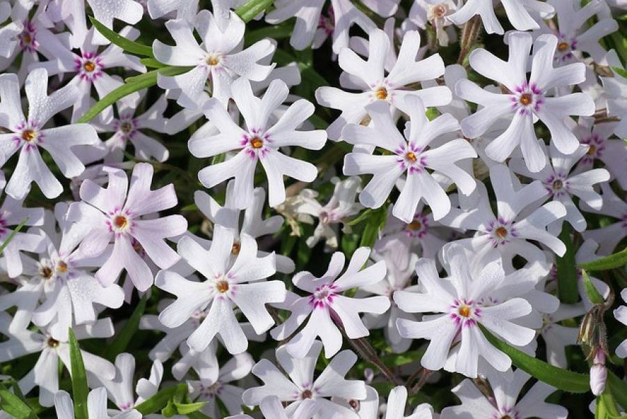 Это стелющиеся растения, первыми расцветающие в саду. Цветки на них появляются в середине мая. Очень популярен флокс шиловидный. Он назван так за мелкие продолговатые листья, по виду напоминающие шило. Растение любит солнце