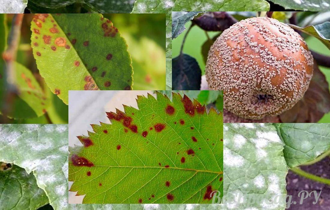 Профилактика мучнистой росы необходима и для деревьев. Поэтому нанесение рабочего раствора должно проходить по всей территории сада, огорода. Болезнь часто встречается на яблонях, грушах, вишнях. Также распространенное явление – плодовая гниль (происходит мумификация плодов, зеленой части дерева).