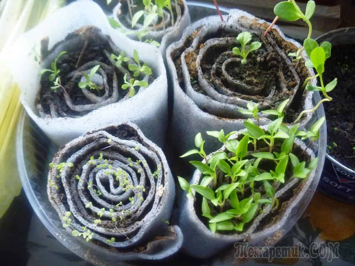 - очень удобно пикировать сеянцы – достаточно развернуть «рулет9raquo;, доставать по одному ростку и пересаживать его в заранее подготовленную емкость;