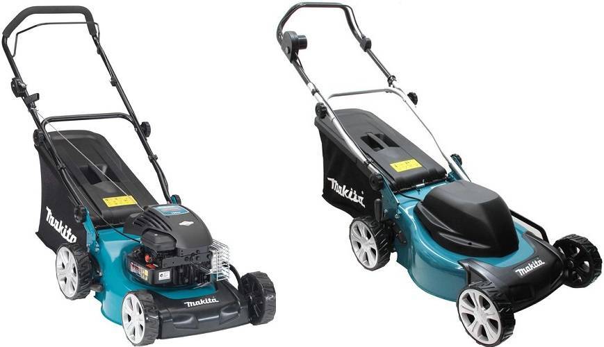 Примером служит бензиновая газонокосилка Makita PLM4617. Модель оснащена четырехтактным американским двигателем мощностью 3, 75 л. с. Агрегат может выполнять функции мульчирования, боковой сброс травы или складировать укос в специальный мешок объемом 60 литров. Ширина полосы скоса 46 см за проход. Центр тяжести смещён так, что аппарат с лёгкостью обрабатывает откосы и места возле вертикальных конструкций. При перевозке травосборник можно снять, а ручки сложить.