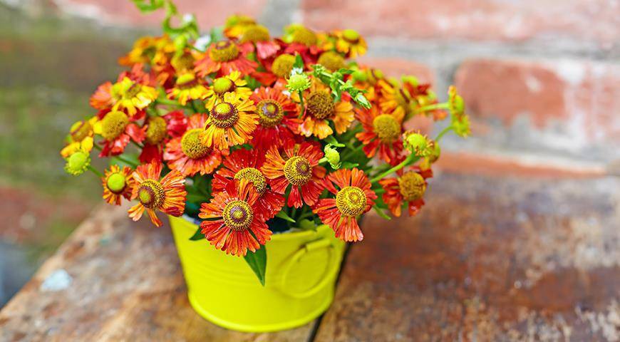 Букеты из гелениума прекрасно смотрятся, но цветки надо срезать в полном роспуске.