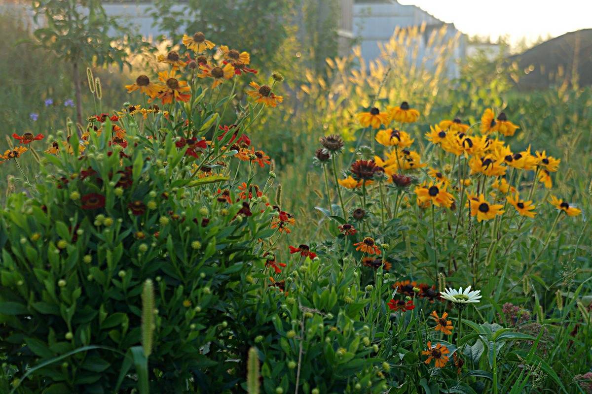 Плотно засаженные цветники – отличная среда обитания для гелениумов.