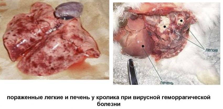 - после проведения вскрытия зараженного кролика ветеринарный специалист может увидеть на поверхности всех внутренних органов геморрагические высыпания.