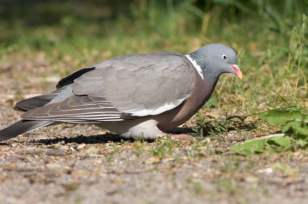 На фото вяхиря хорошо виден окрас груди — винно-розовый, спереди с зеленоватым отливом.