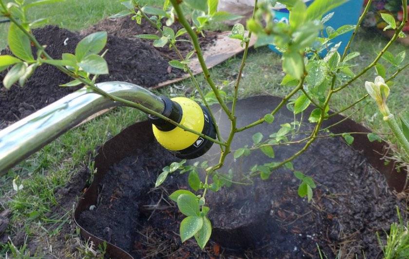 Опытные садоводы рекомендуют для получения необходимых показателей кислотности почвы добавлять в воду столовый уксус из расчёта на десять литров воды 100 миллилитров уксуса. В обязательном порядке кустики потребуется подкармливать минеральными удобрениями. Эта культура чувствительна к недостатку в почве азота и других микроэлементов. Если в качестве мульчи используются опилки, то дозировку азотосодержащих составов необходимо удвоить. Садоводам рекомендуется вносить в небольших дозах в почву сульфат аммония или аммиачную селитру, наблюдая за состоянием растений, которые не должны желтеть и слабнуть.