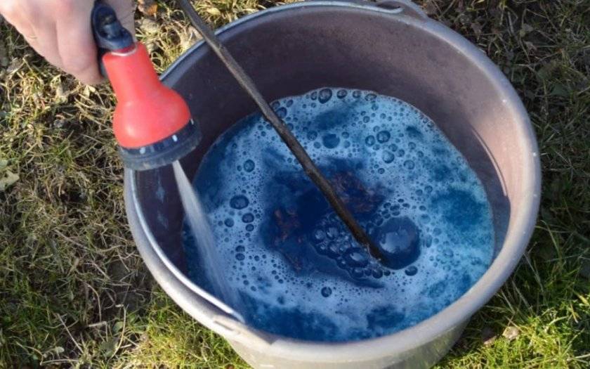 - Мыльно-зольный раствор. Его готовят из 100 г мыла, 300 г древесной золы и 10 л воды.
