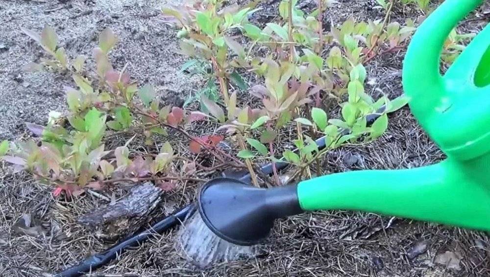 Голубика любит влагу, поэтому успех выращивания напрямую зависит от правильного своевременного полива. Поливать кустарники придется достаточно часто, им не хватит природных осадков.