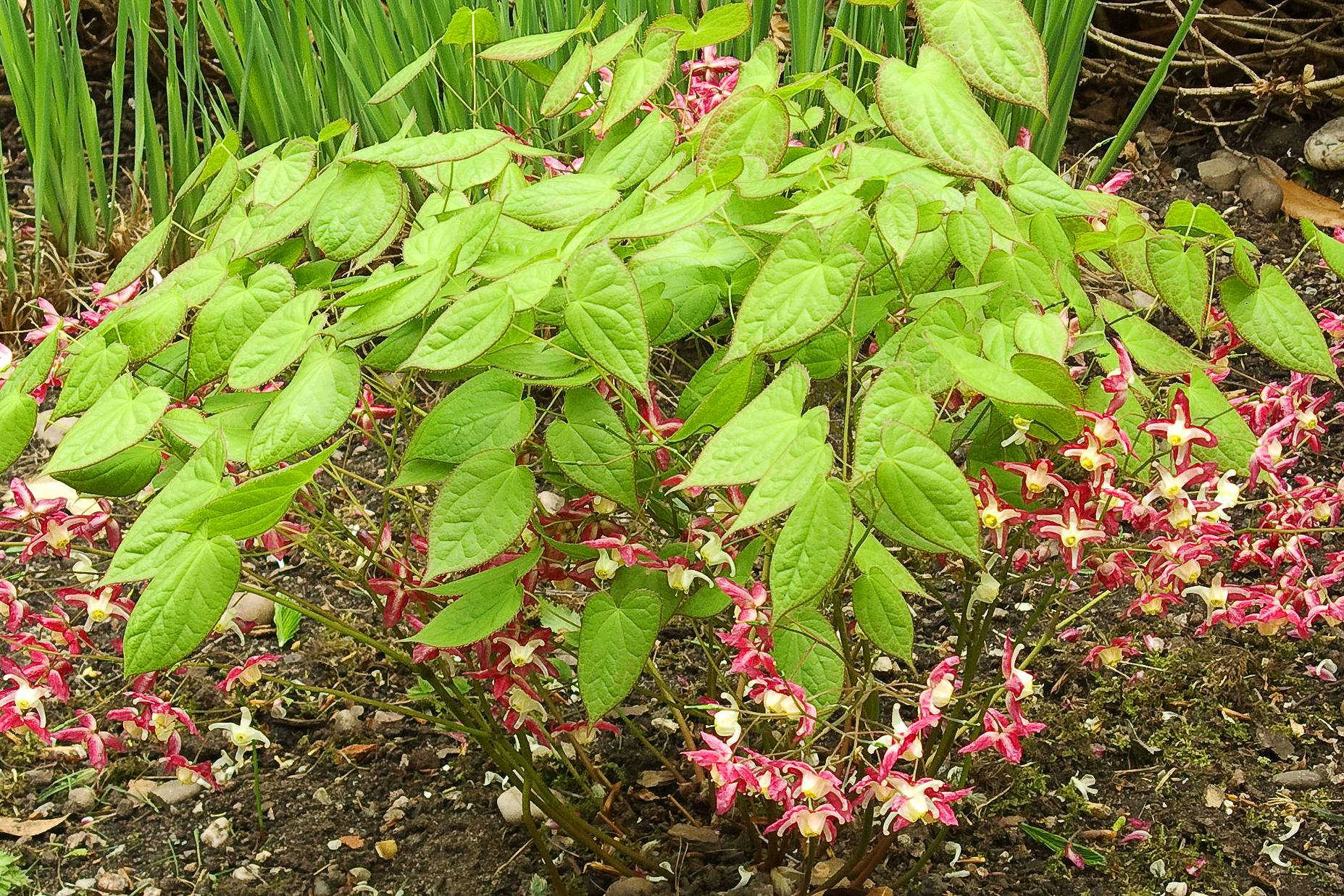 - эпимедиум варлийский, образующий плотные и высокие куртинки до 50 см в высоту с краснеющими осенью листьями и нежными трогательными соцветиями;