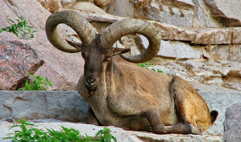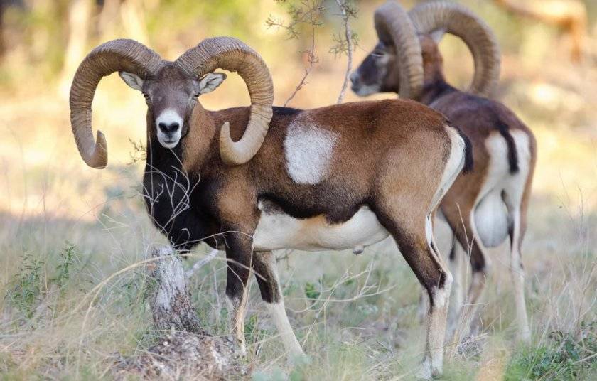 - Европейский муфлон. Его тело может достигать 125 см, а вес 50 кг. Цвет меха напрямую зависит от времён года. Яркий рыжий – летний окрас, каштаново-бурый – зимний. Рога самца сильно развиты, могут достигать в длину 65 см. У самок, наоборот, рога практически отсутствуют. Обитает муфлон на территории южной части Европы, а также в горах Сардинии и Корсики.