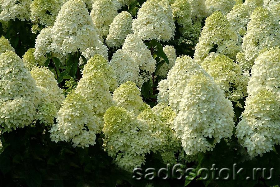- У сорта Лайм Лайт (Limelight) красивые пушистые соцветия, состоящие только из стерильных крупных цветков. Ближе к осени они становятся зеленоватыми, как плод лайма.