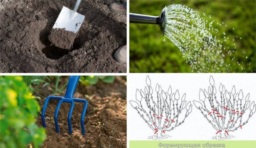 В первый после посадки год весной побеги укорачивают на одну или две почки, а слабые побеги удаляются полностью до основания. Если обнаружен здоровый и молодой, но растущий внутрь куста побег, его тоже необходимо обрезать до основания. Подобные ветки будут негативно отражаться на форме кустарника.
