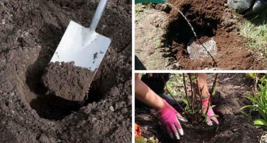 Самым распространённым способом размножить, а соответственно и высадить в открытый грунт гортензию, считается приобретение саженцев. За 15–20 дней до момента их посадки в земле на выбранном участке создают лунки. Их ширина зависит от диаметра корневой системы посадочного материала. Если в момент их создания были затронуты грунтовые воды, то дно ямы укладывают мелкой галькой или керамзитом. Такой дренаж позволит воде быстрее проходить вглубь, предотвращая гниение корней растения. Следующим слоем станет субстрат на основе торфа, в который будут высаживать кустарник.