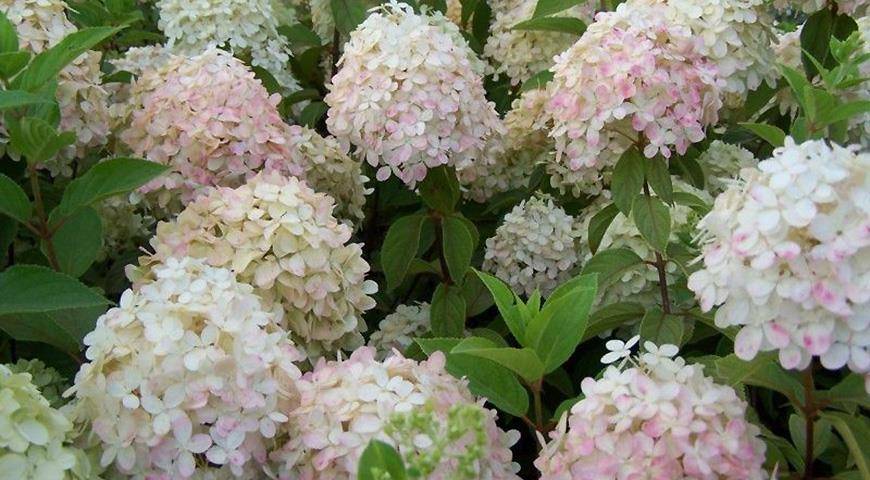 Неприхотливый сорт с белыми соцветиями, которые к осени приобретают розовато-сиреневатый оттенок. Высотой 2 м.