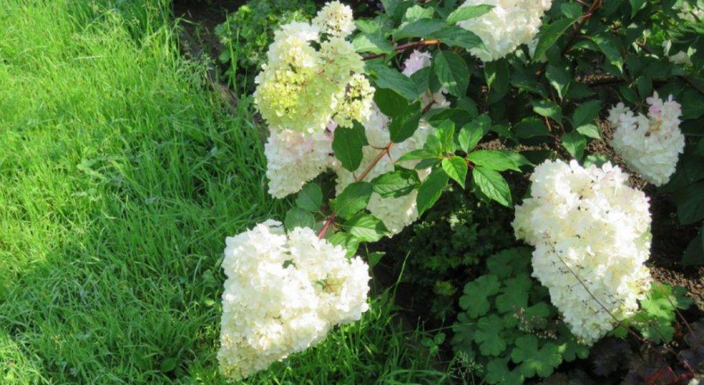 Гортензия грандифлора отличается изменением зеленоватого оттенка соцветий на белый в течение лета, а осенью цветы приобретают розоватый оттенок. Данный сорт неприхотлив в уходе, отличается повышенной морозостойкостью.