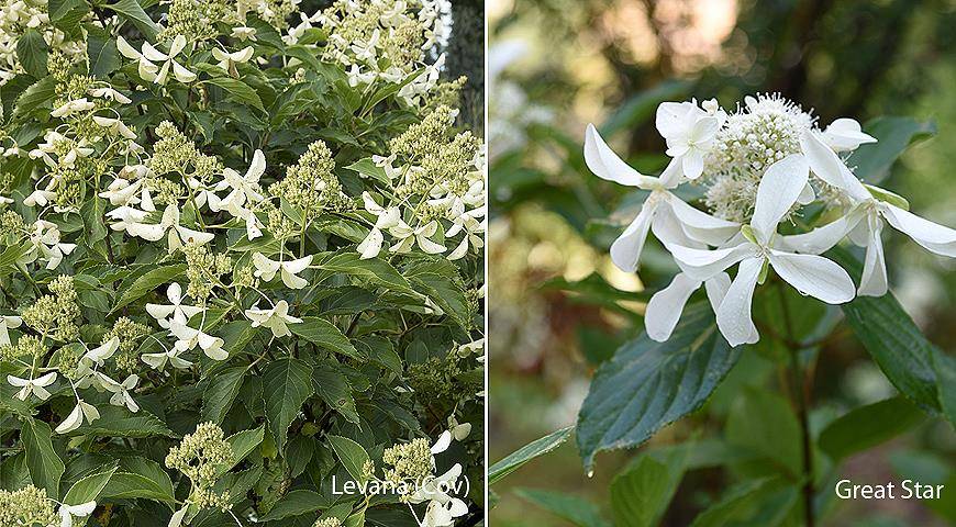 Гортензия метельчатая Levana (слева), Great Star (справа)
