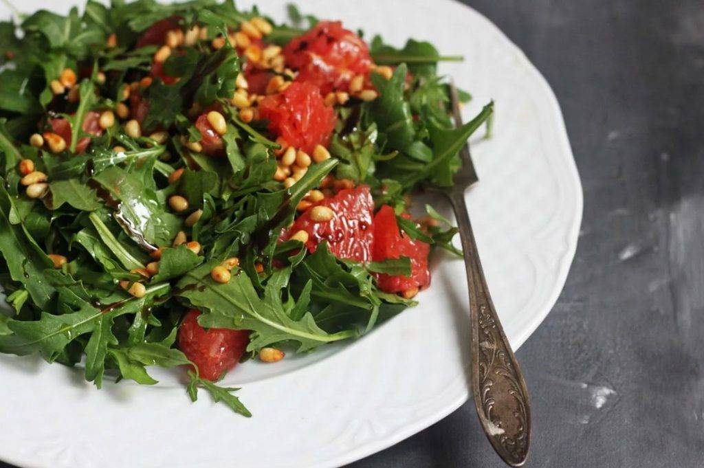 «Собрать» освежающий салат с добавлением мякоти цитрусового можно практически из любых продуктов. Пикантное пряно-горькое послевкусие блюду придадут такие ингредиенты: