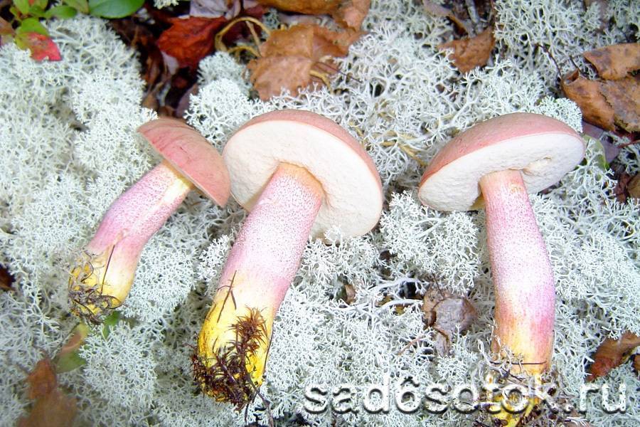 - Подосиновик боровой: редкий съедобный гриб, который можно найти в сухих сосновых лесах с большим количеством мха. Шляпка может достигать 15 см в диаметре, кожица окрашена в необычный темно-малиновый цвет. Трубчатый слой под шляпкой белый, но при надавливании становится красным. Мякоть белая, но быстро чернеет на срезе, ярко выраженного запаха не имеет.