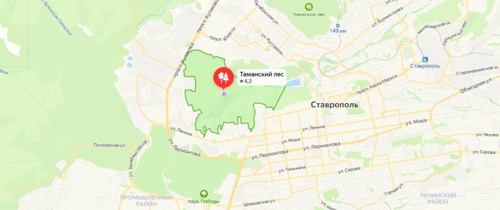 Расположен непосредственно в самом Ставрополе.