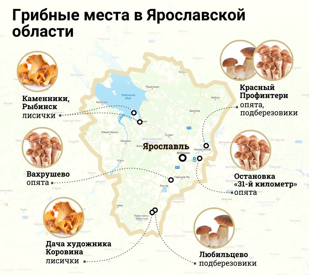 Многие любители собирать грибы ищут не только грибные места на карте, но и информацию, какие виды произрастают в отдельных районах, и когда их лучше собирать.