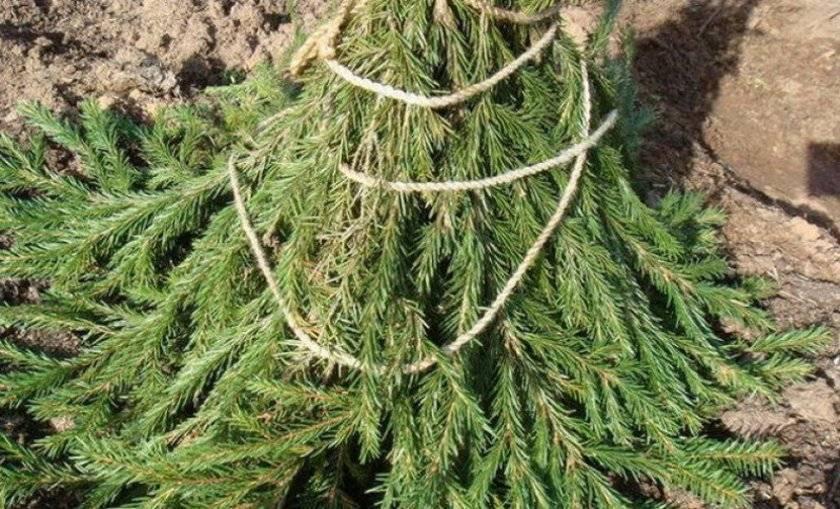 Штамб оборачивают утепляющим материалом и затем обкладывают хвойным лапником или сеткой для защиты от грызунов.