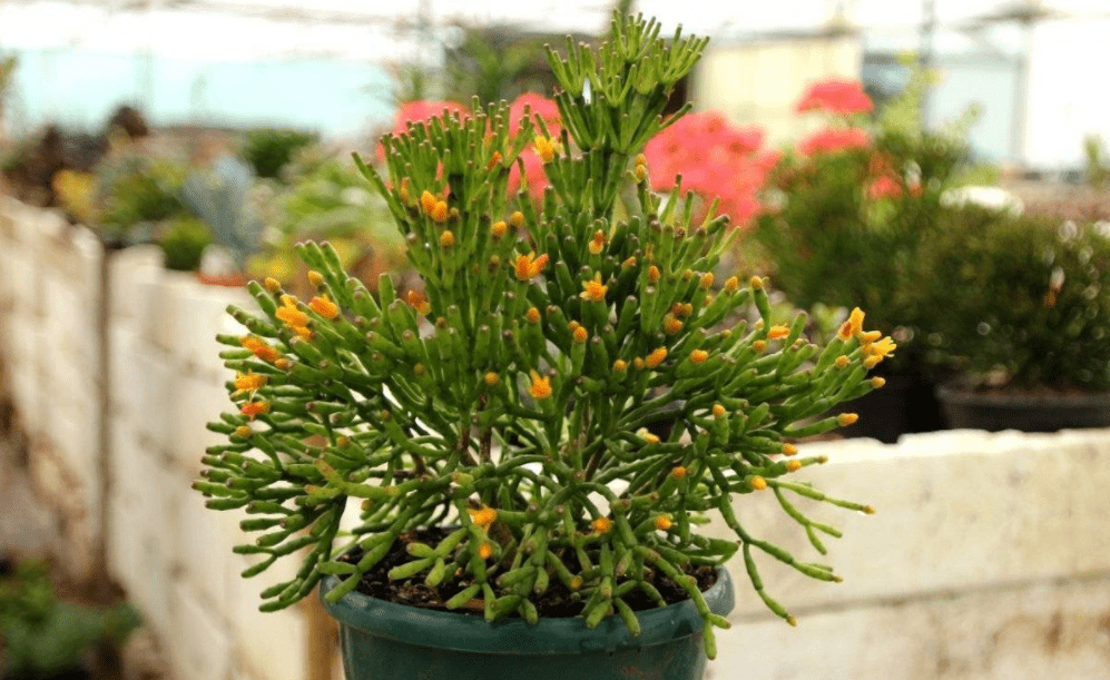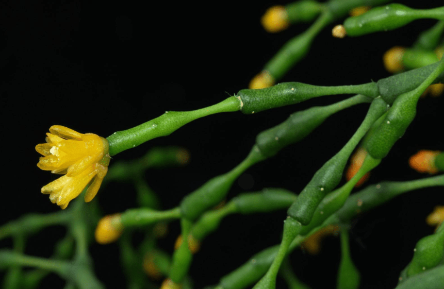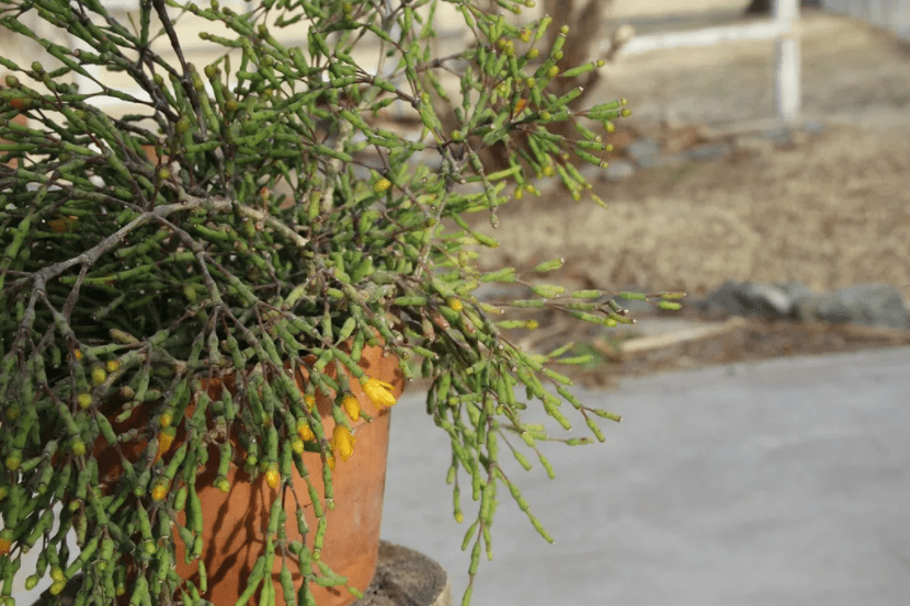 Hatiora epiphylloides выпускает красивые соцветия желтого тона. Образуются бутоны на кончиках побегов.