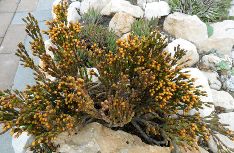 В естественных условиях куст вырастает до 2-х метров. Домашние растения не могут похвастаться такими габаритами, их высота в среднем достигает 20-30 см. Зеленые побеги состоят из пузатых сегментов цилиндрической формы. При накоплении влаги они раздуваются и становятся бочкообразными. Побеги хрупкие, поэтому не рекомендуется прикасаться к кроне руками.