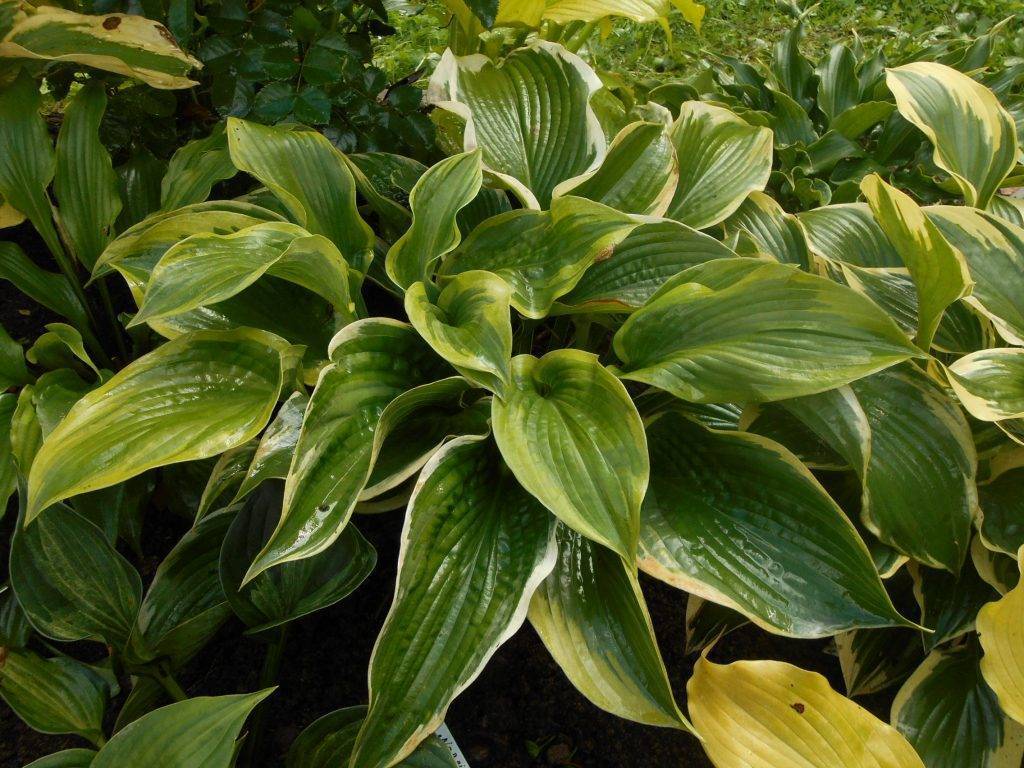 Листья у гигантских хост площадью от 70 см, строго жилкованные, с очень легкой волнистостью или «вафельностью», окрашены как в однотонные, так и пестрые тона. Бывают глянцевыми и матовыми.