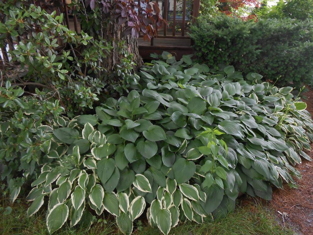 Посадочные ямы для хост размещают на расстоянии 30-80 см, в зависимости от сорта. Сильноветвистые кусты высаживают на расстоянии 100 см друг от друга. После посадки их обильно поливают и мульчируют: для этого можно использовать опилки или кору.