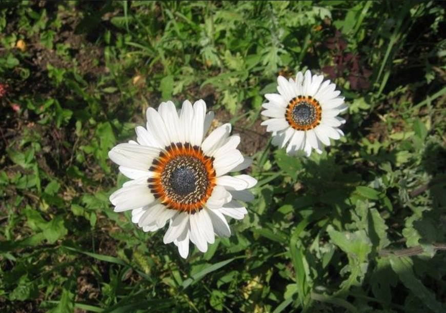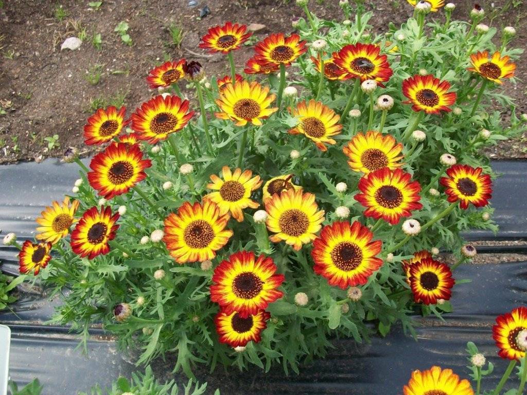 Но интереснее всего (по моему скромному мнению) высаживать килеватую хризантему рядом с космеей — из-за похожей формы цветов и листиков этих растений будет казаться, что на одном огромном пушистом кусте почему-то распустились разные по раскраске цветы. Единственное «но» такой посадки: если хризантема килеватая — однолетник, то космея — многолетник.
