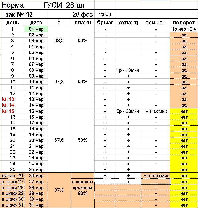 Режим инкубации гусиных яиц: таблица.