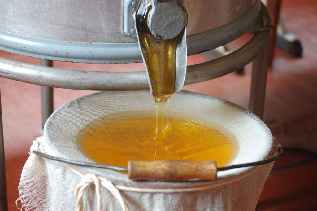 Прежде чем продукт окажется в баке для отстаивания, он пройдет выкачку и очистку при помощи специального инвентаря. Дозревший мед разливают по емкостям для хранения.