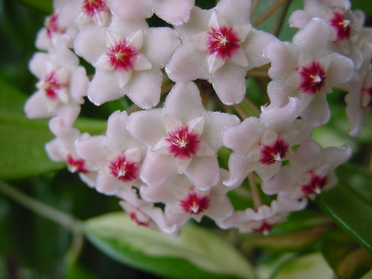 Хойя идеально подойдёт для начинающих садоводов. Она неприхотлива в уходе и проста в выращивании. Усики хойи вырастают до 50 см. Привлекательность растения заключается в необычной форме цветков. Они представляют собой небольшие звездочки, объединенные в несколько больших букетов. При этом цветовая гамма может быть любой, начиная от белой и заканчивая оттенками красных тонов.