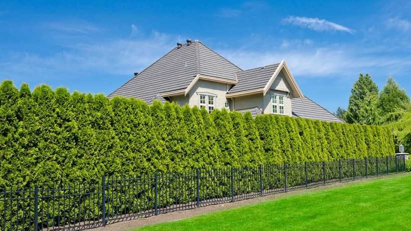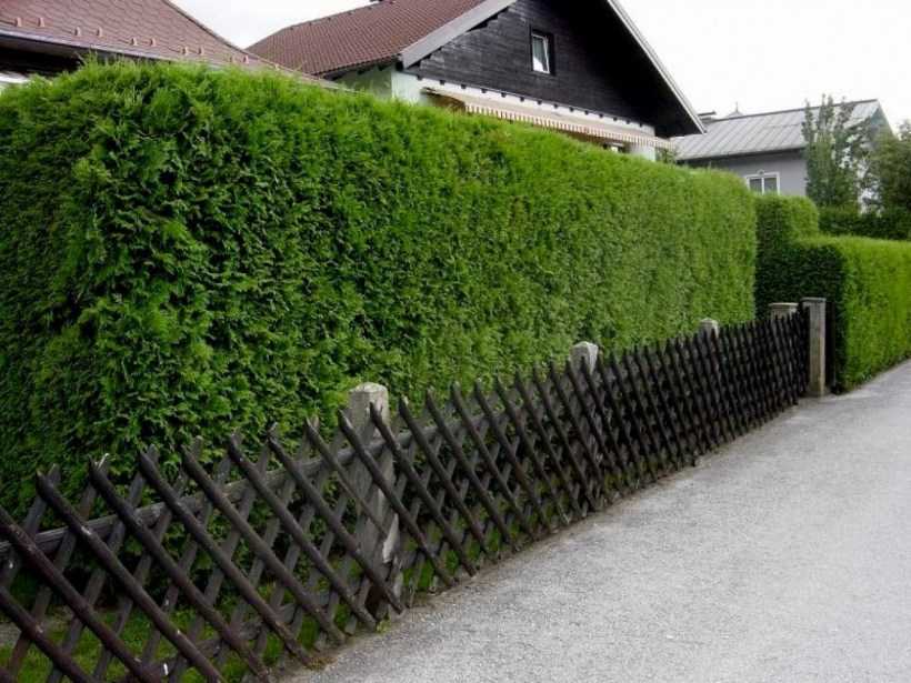 Оградить и украсить земельный участок еще можно туей – это нетребовательное к условиям прорастания и уходу хвойное растение, которое хорошо приживается даже в условиях большой задымленности воздуха и быстро отрастает после стрижки.