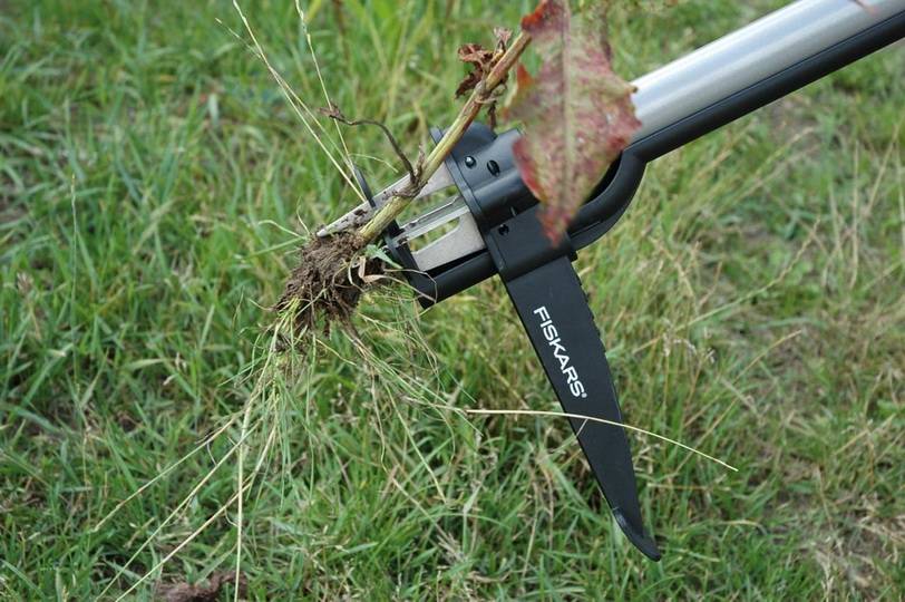 Немецкий бренд, товар произведен в Германии. Универсальный корнеудалитель с телескопической ручкой. Длина регулируется поворотом средней части. Раздвоенное лезвие с ограничителем выполнено из закаленной стали с антикоррозийным покрытием. Рабочая часть очень прочная, подходит для быстрого и аккуратного удаления любых сорняков. Отличительная особенность инструмента – удобная ручка, покрытая прорезиненным пластиком. При выкапывании сорняков не устает и не пачкает одежду. Есть и недостаток – высокая цена.