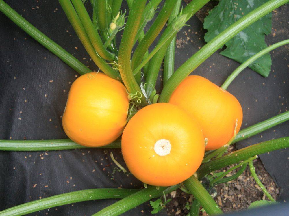 Средний диаметр одного кабачка – около 15 см, вес около 300-500 г. У него привлекательный желтый цвет и шарообразная форма. «Апельсинки» содержат мало семян и плотную мякоть.