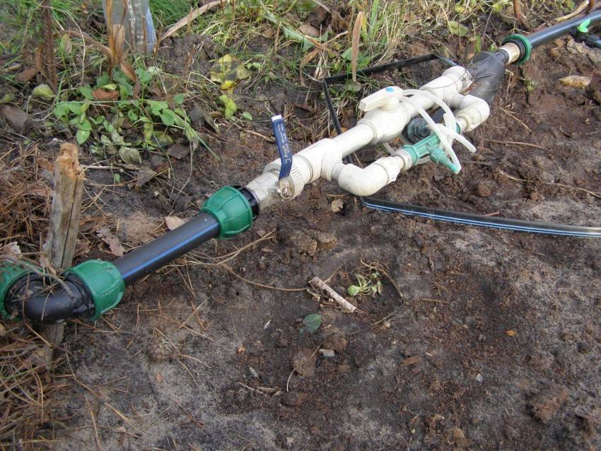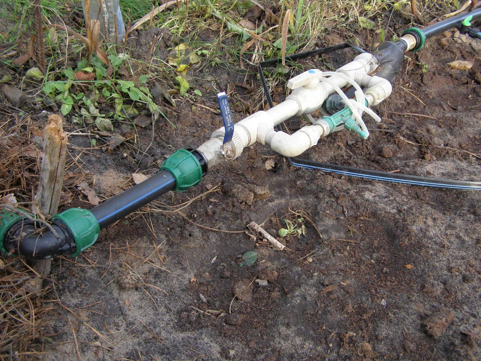В последние годы пользуется популярностью установка горизонтальных труб. Вдоль ряда винограда прокладывается на глубине 50–70 см горизонтальная труба с отверстиями. Отверстия для просачивания воды должны располагаться на расстоянии 0,5–1 м друг от друга, их обматывают сеткой или агроволокном, чтобы исключить засорение. Правда, при поливе с помощью горизонтальной трубы некоторые кусты могут получить меньше воды или не получить ее после засора части отверстий.