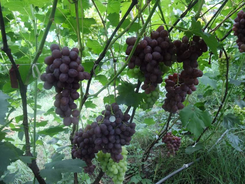Но виноградари с опытом рекомендуют обязательно учитывать прогноз погоды, так как если стоит жара, столовым сортам даже в период созревания желательно подливать воду (примерно одно ведро на взрослый куст). Иначе при дожде после засухи ягоды потрескаются.