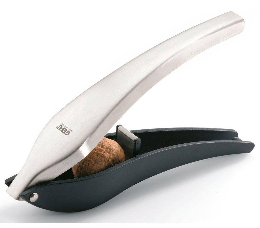 Это самый безопасный способ раскалывания орехов, к тому же практически бесшумный, а осколки не разлетаются. При желании орехоколом в домашних условиях можно очистить до 10 кг плодов в течение часа, не повредив серединку. Приспособление пригодится тем, кто обрабатывает большие партии плодов. Но для орехов с очень твердой скорлупой понадобятся очень сильные руки. Иногда вместо орехокола используют давилку для чеснока или плоскогубцы, но эти инструменты менее удобны.